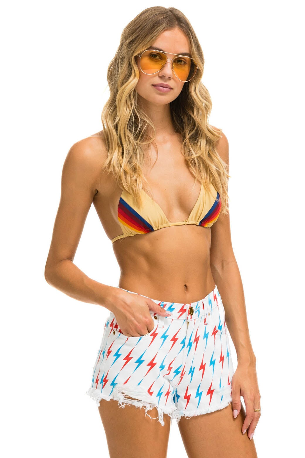 AVIATOR BOLT BOYFRIEND CUTOFF JEAN SHORTS - WHITE