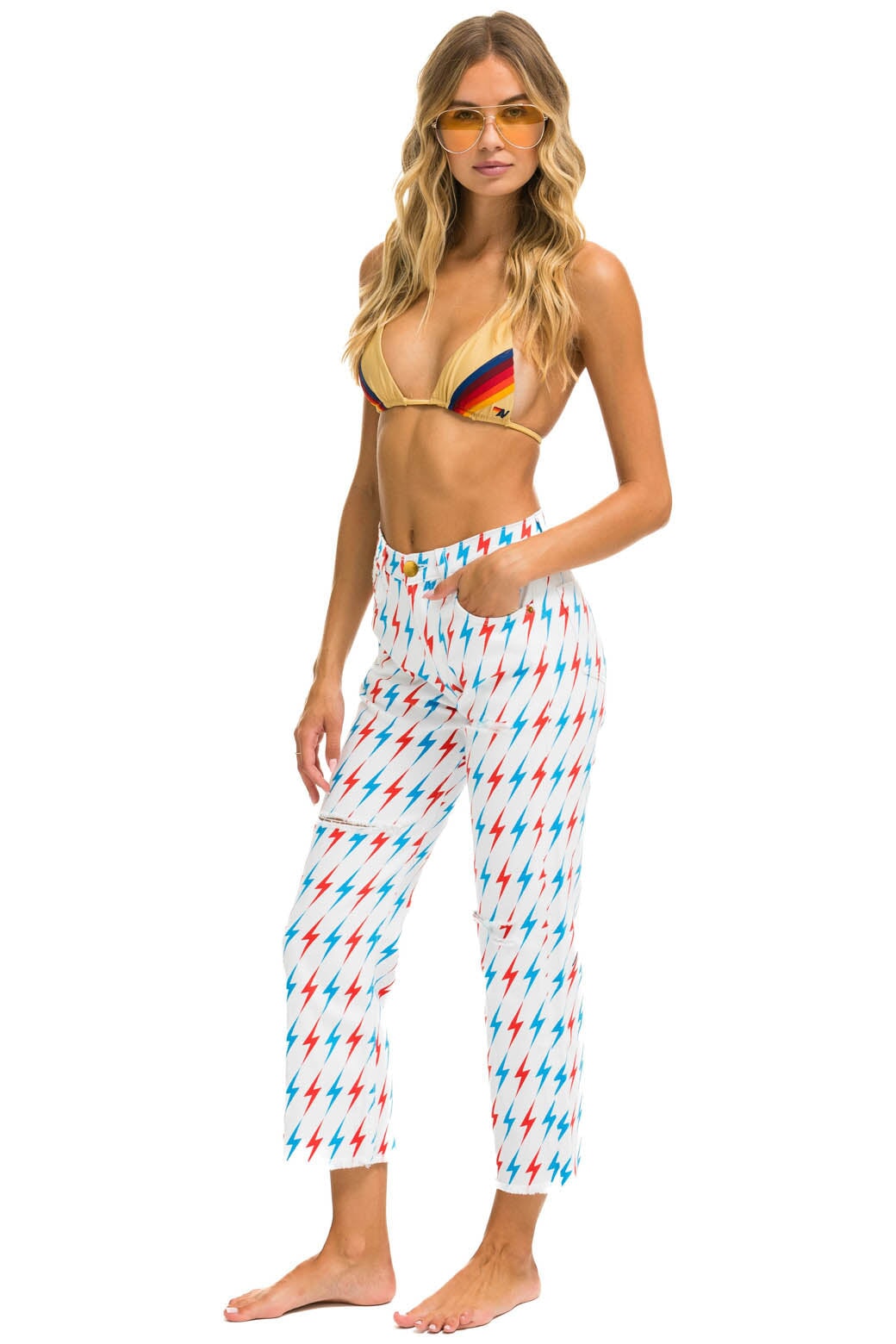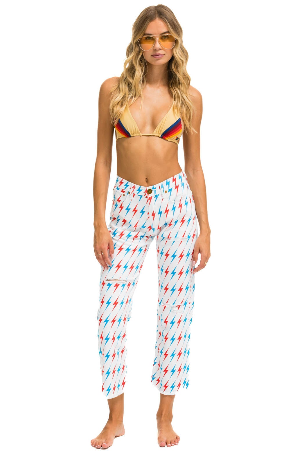 AVIATOR BOLT MID RISE RELAXED SURFER JEAN - WHITE