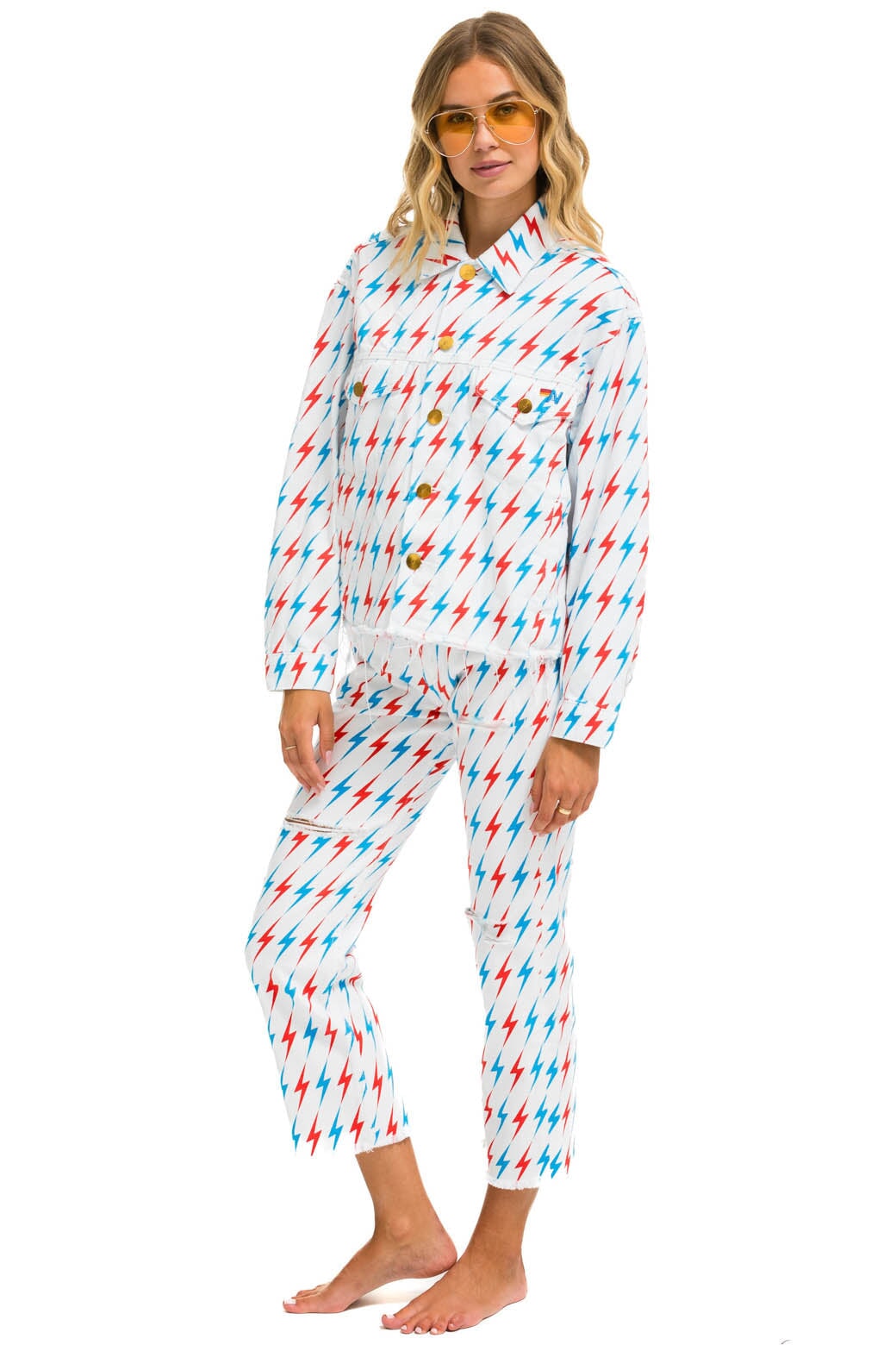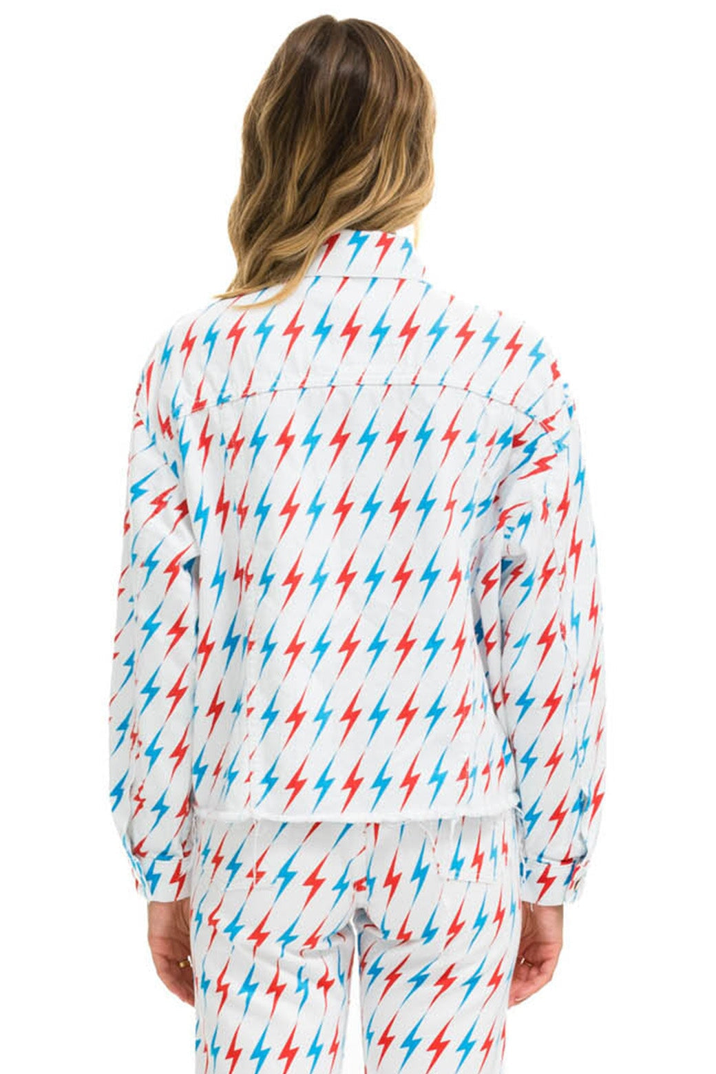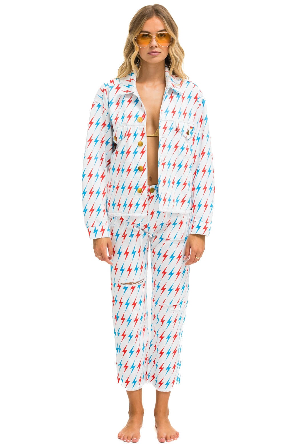 AVIATOR BOLT OVERSIZED CUTOFF DENIM JACKET - WHITE