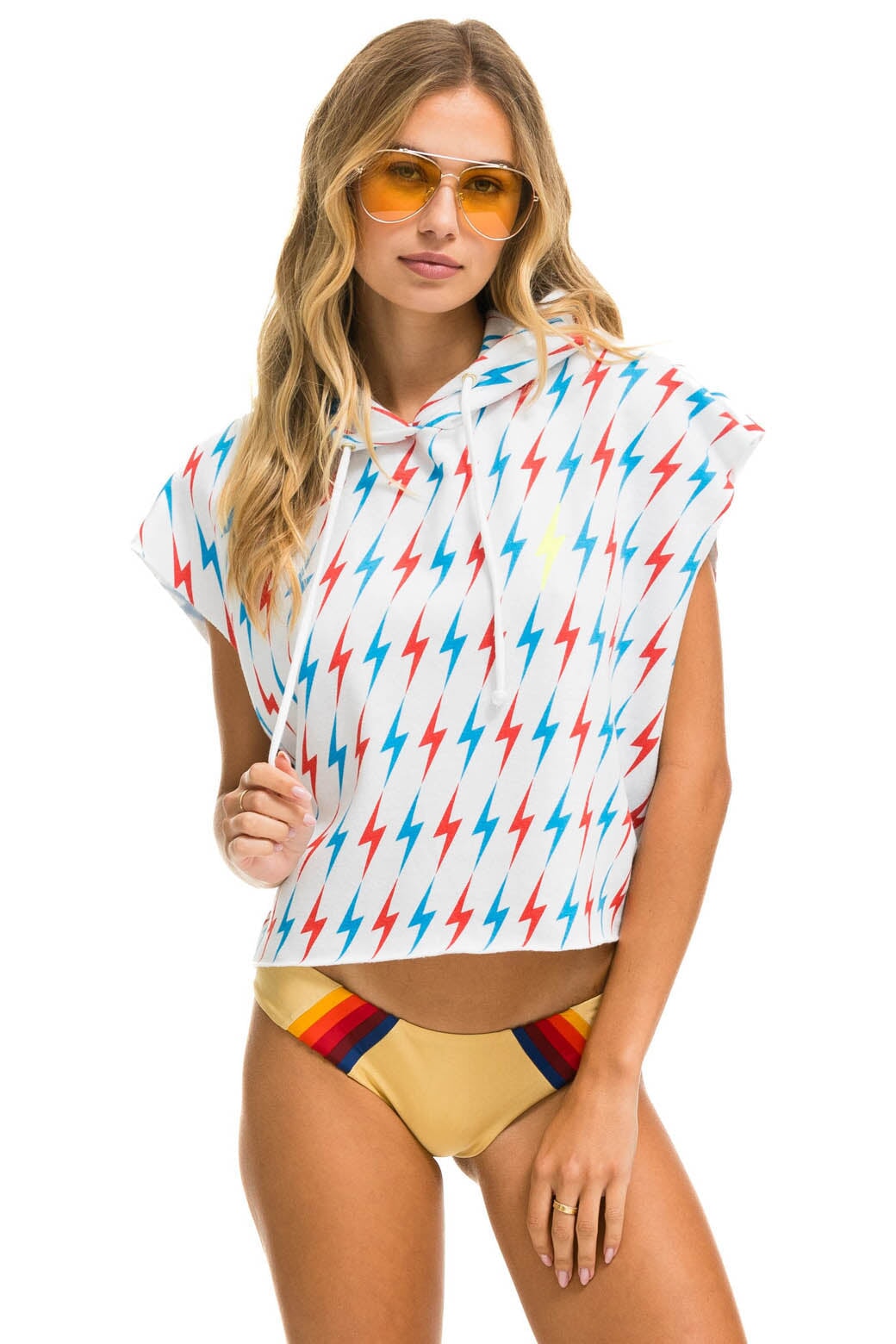 AVIATOR BOLT SLEEVELESS RELAXED CROPPED PULLOVER HOODIE - WHITE // USA
