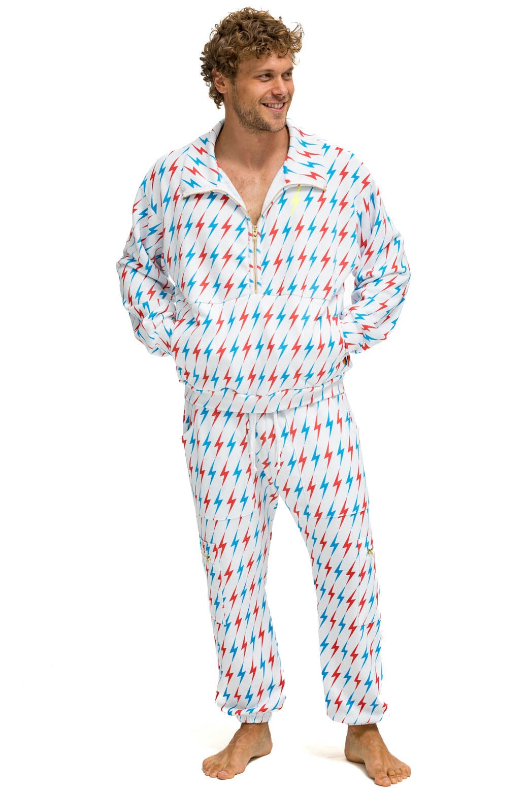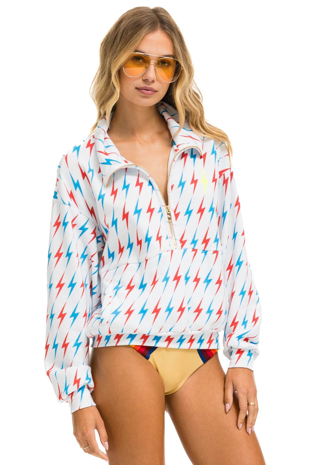 AVIATOR BOLT W/ BOLT EMBROIDERY FLEECE HALF ZIP SWEATSHIRT - WHITE // USA