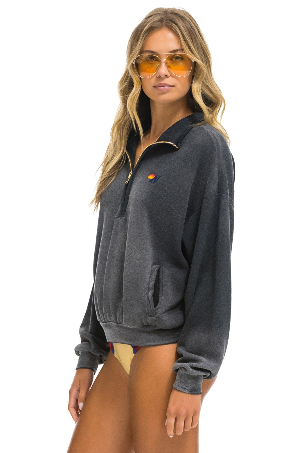 ESSENTIAL HALF ZIP RELAXED SWEATSHIRT - FADED SMOKE