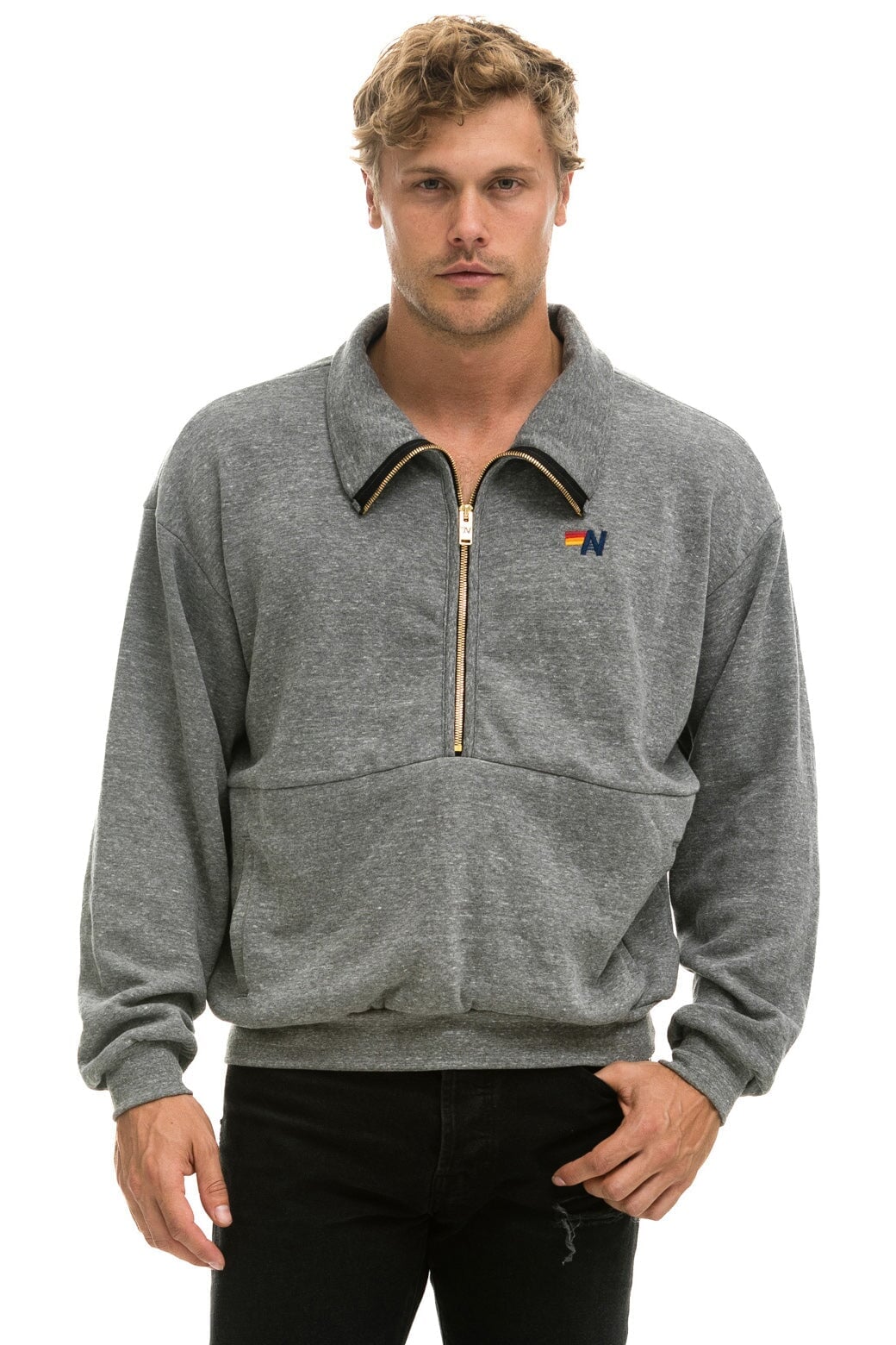 LOGO EMBROIDERY HALF ZIP SWEATSHIRT - HEATHER GREY